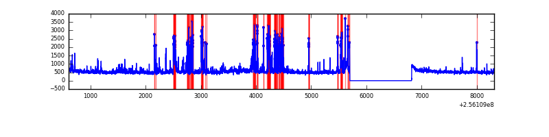 Red curve is a Poisson curve with rate = median count rate of data. |