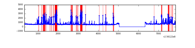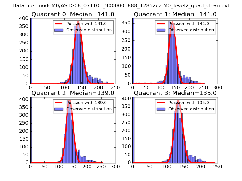 Red curve is a Poisson curve with rate = median count rate of data. |