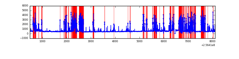 Red curve is a Poisson curve with rate = median count rate of data. |