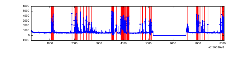 Red curve is a Poisson curve with rate = median count rate of data. |