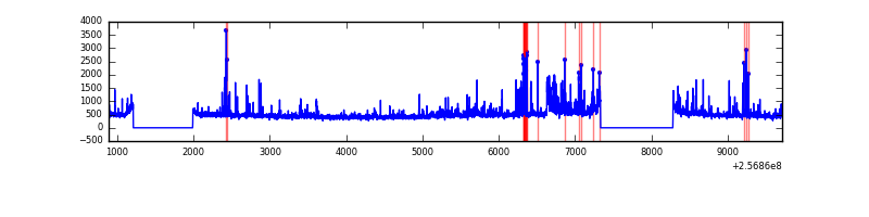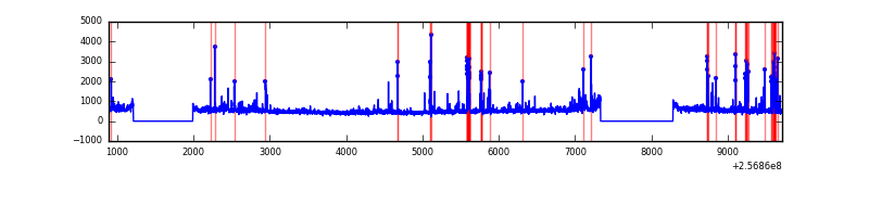 Red curve is a Poisson curve with rate = median count rate of data. |