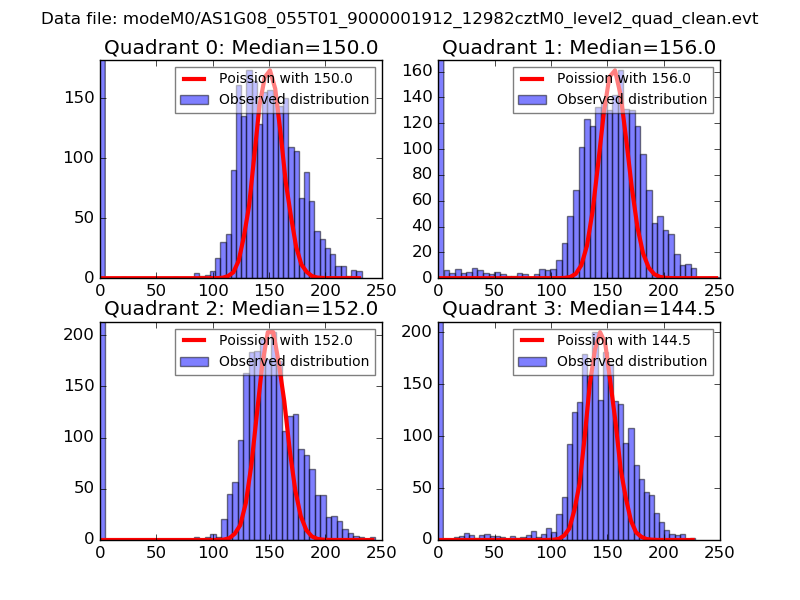 Red curve is a Poisson curve with rate = median count rate of data. |