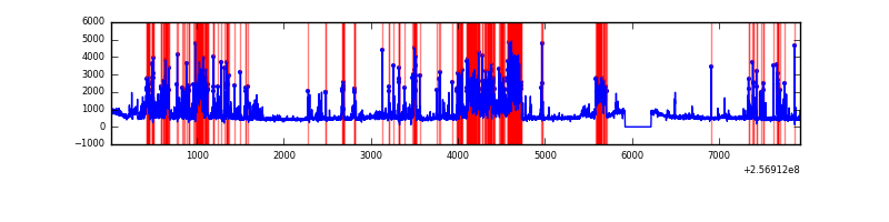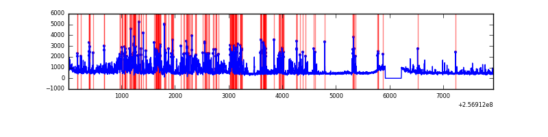 Red curve is a Poisson curve with rate = median count rate of data. |
