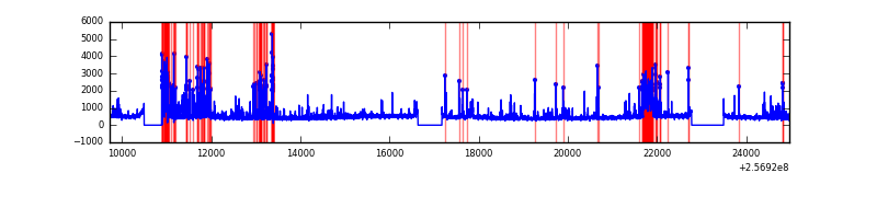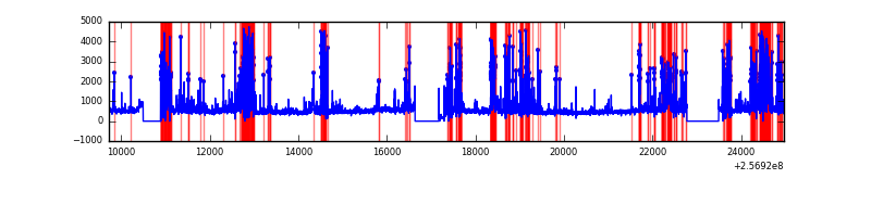 Red curve is a Poisson curve with rate = median count rate of data. |