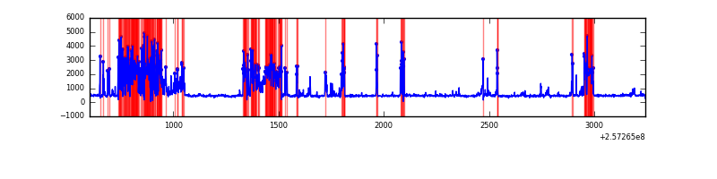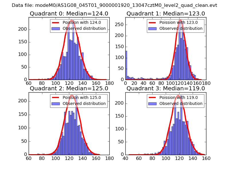 Red curve is a Poisson curve with rate = median count rate of data. |
