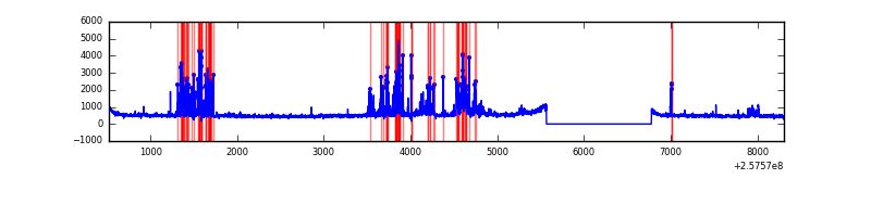 Red curve is a Poisson curve with rate = median count rate of data. |