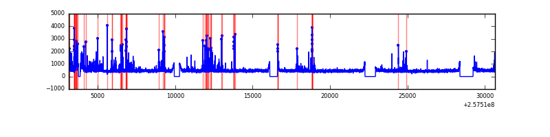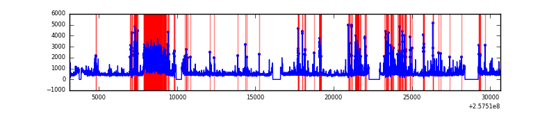 Red curve is a Poisson curve with rate = median count rate of data. |