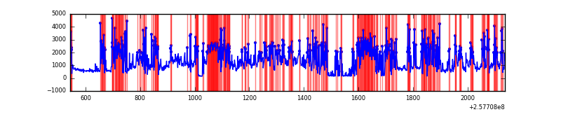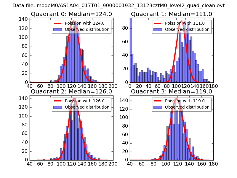 Red curve is a Poisson curve with rate = median count rate of data. |