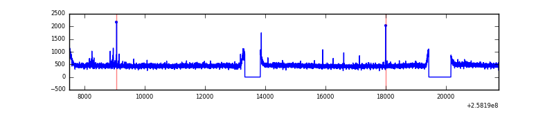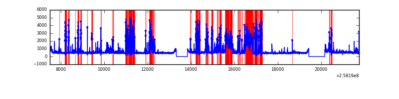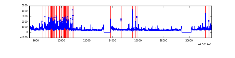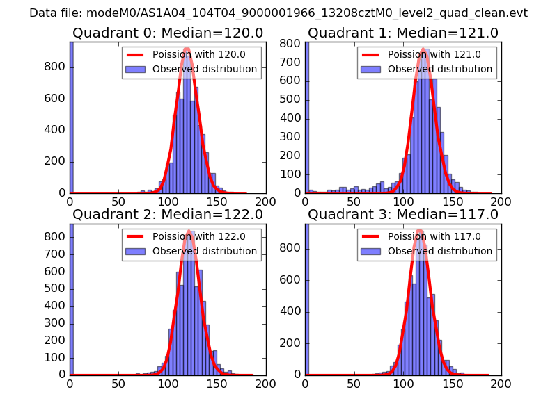 Red curve is a Poisson curve with rate = median count rate of data. |