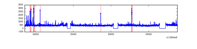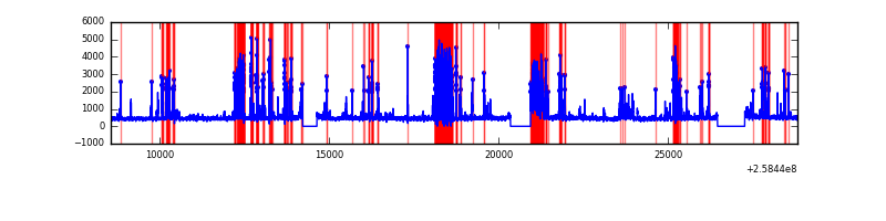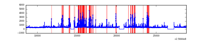 Red curve is a Poisson curve with rate = median count rate of data. |