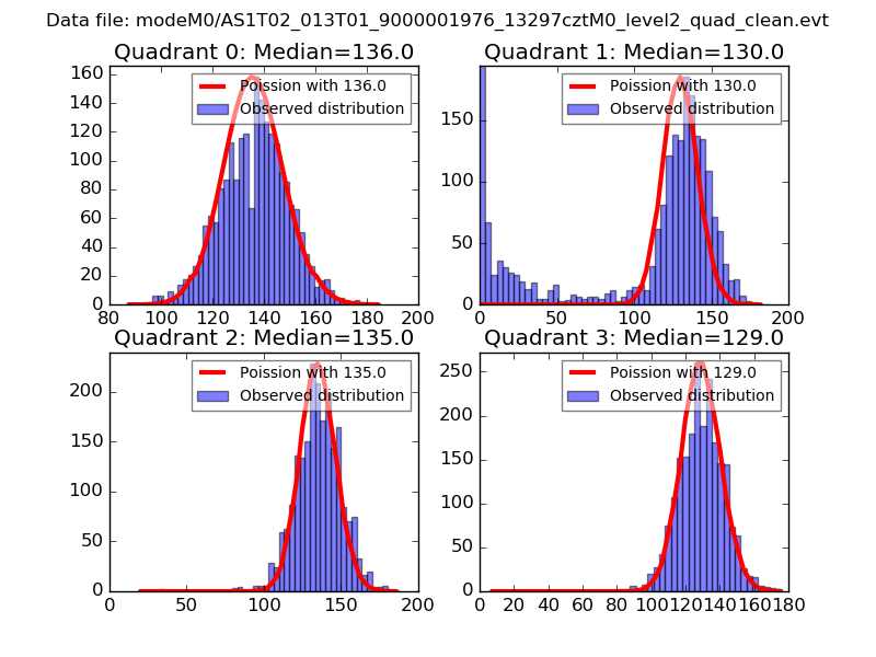 Red curve is a Poisson curve with rate = median count rate of data. |