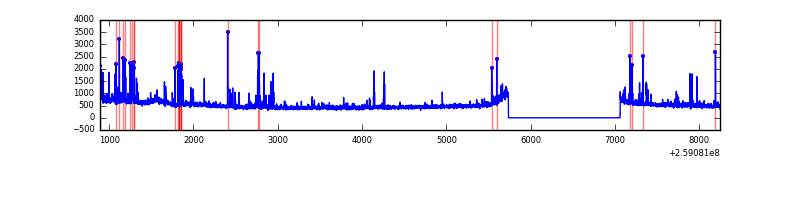 Red curve is a Poisson curve with rate = median count rate of data. |