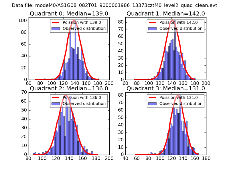 Red curve is a Poisson curve with rate = median count rate of data. |