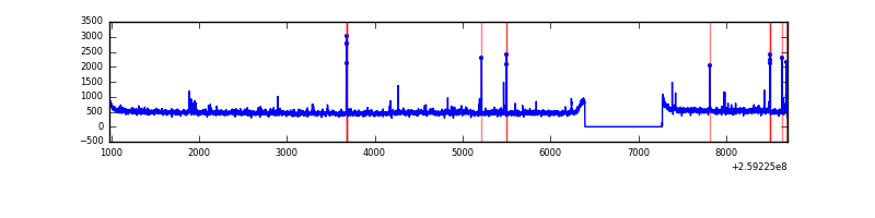 Red curve is a Poisson curve with rate = median count rate of data. |