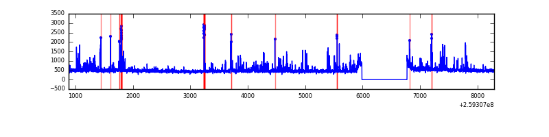 Red curve is a Poisson curve with rate = median count rate of data. |