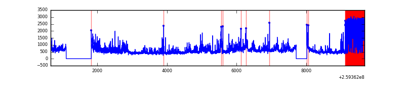 Red curve is a Poisson curve with rate = median count rate of data. |