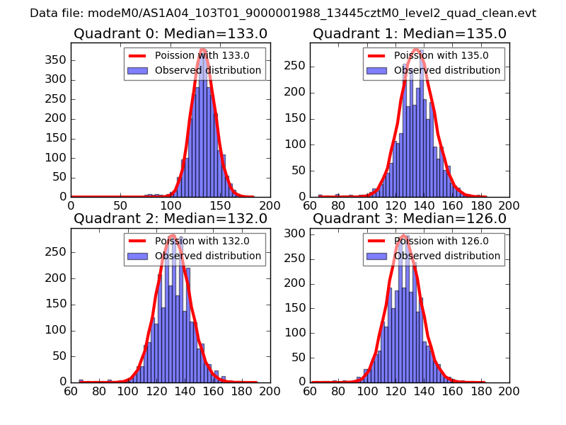 Red curve is a Poisson curve with rate = median count rate of data. |
