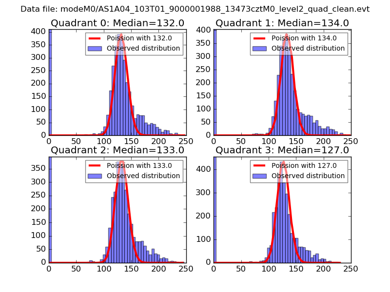 Red curve is a Poisson curve with rate = median count rate of data. |