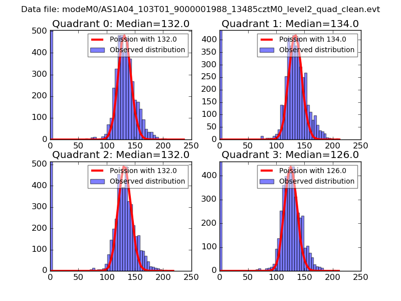 Red curve is a Poisson curve with rate = median count rate of data. |
