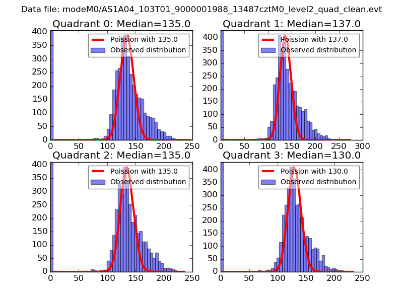 Red curve is a Poisson curve with rate = median count rate of data. |