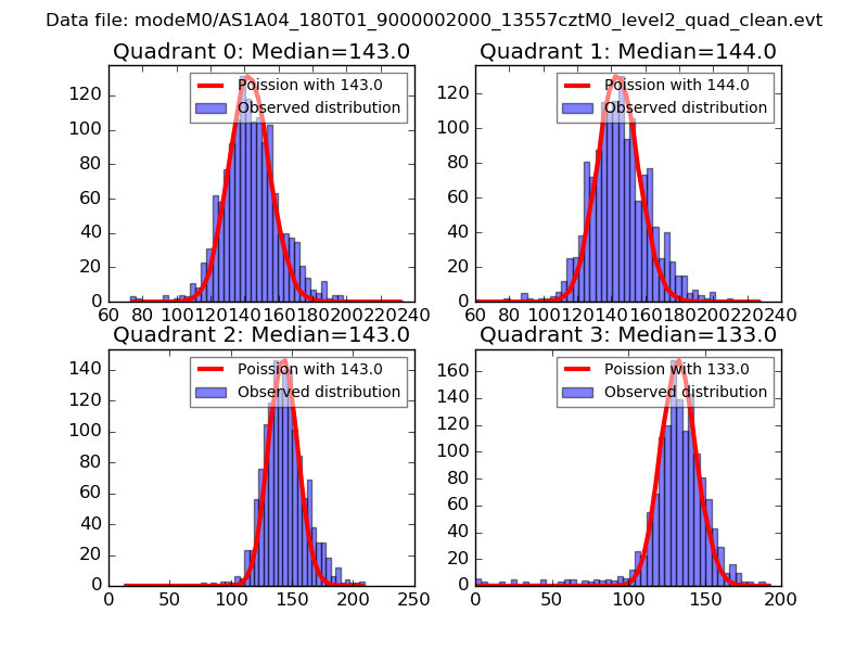 Red curve is a Poisson curve with rate = median count rate of data. |