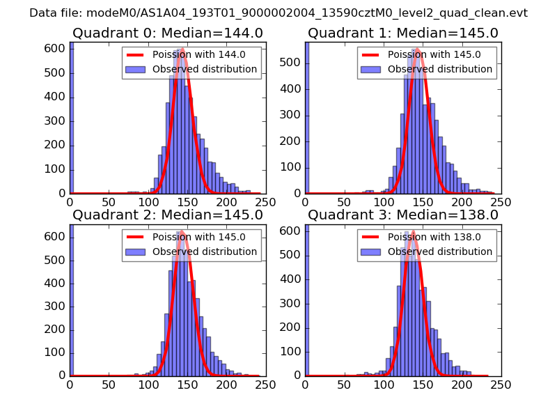 Red curve is a Poisson curve with rate = median count rate of data. |