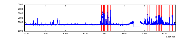 Red curve is a Poisson curve with rate = median count rate of data. |