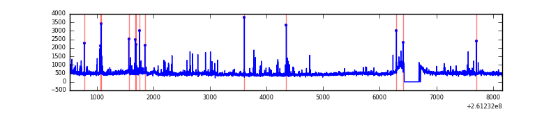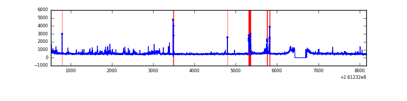 Red curve is a Poisson curve with rate = median count rate of data. |