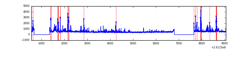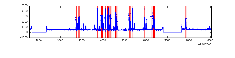 Red curve is a Poisson curve with rate = median count rate of data. |