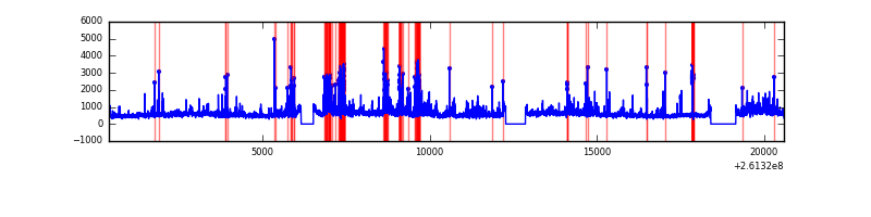 Red curve is a Poisson curve with rate = median count rate of data. |