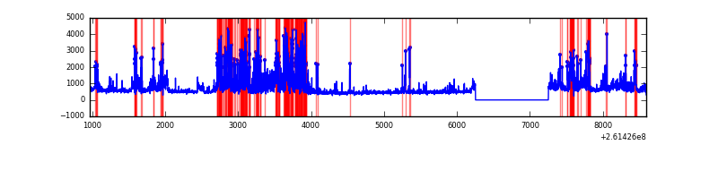 Red curve is a Poisson curve with rate = median count rate of data. |