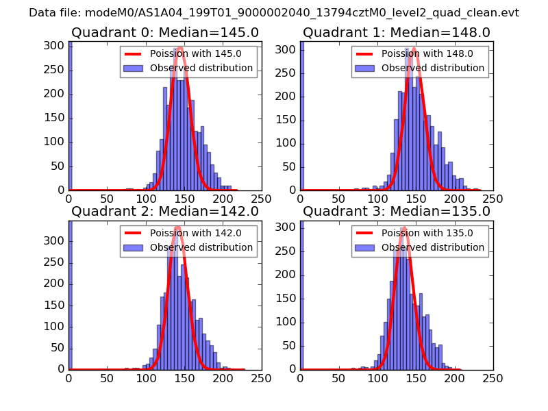 Red curve is a Poisson curve with rate = median count rate of data. |