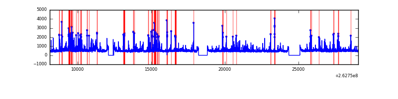 Red curve is a Poisson curve with rate = median count rate of data. |