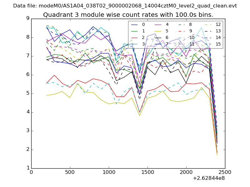 Module-wise count rates for Quadrant A