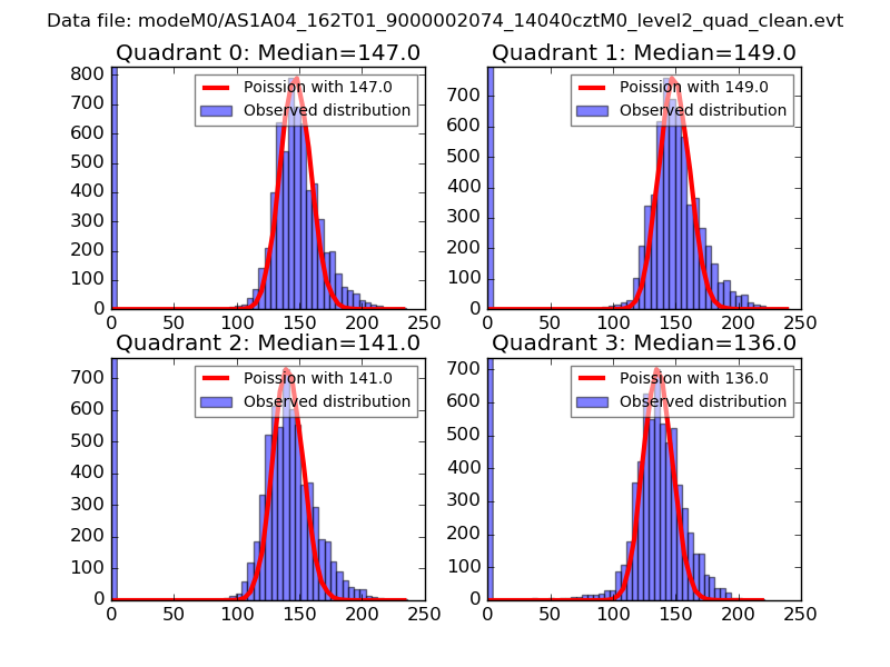 Red curve is a Poisson curve with rate = median count rate of data. |