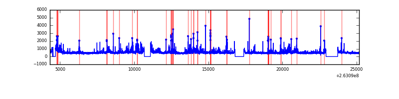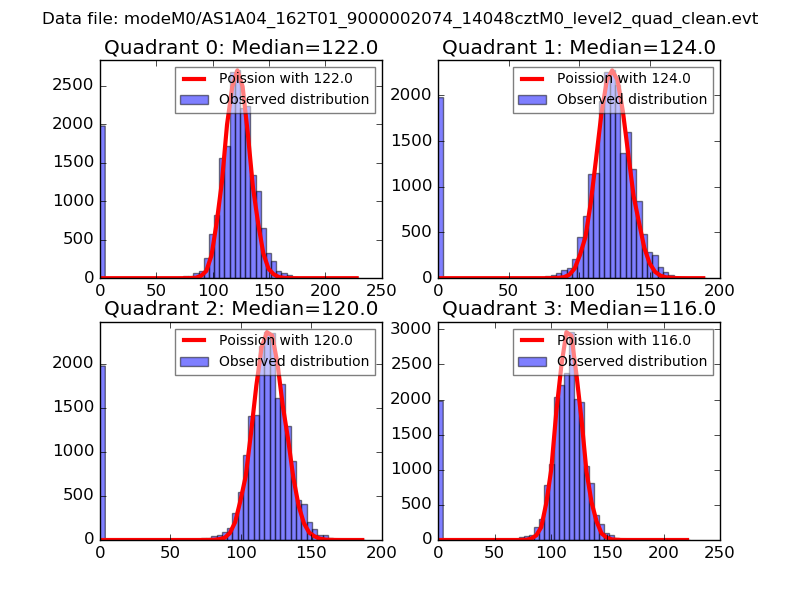 Red curve is a Poisson curve with rate = median count rate of data. |