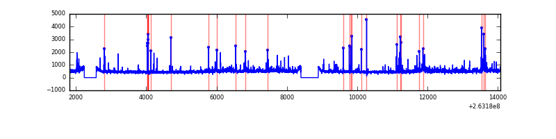 Red curve is a Poisson curve with rate = median count rate of data. |