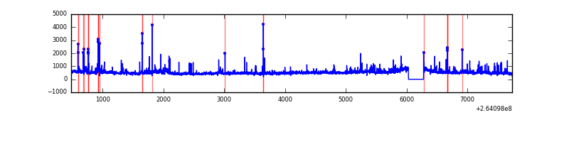 Red curve is a Poisson curve with rate = median count rate of data. |