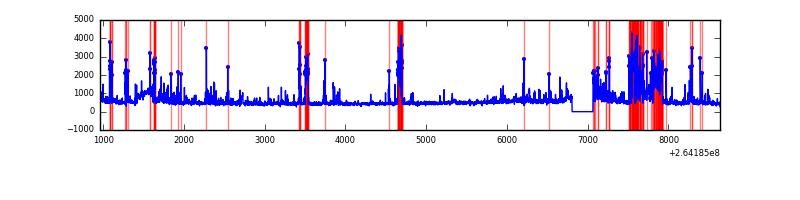 Red curve is a Poisson curve with rate = median count rate of data. |