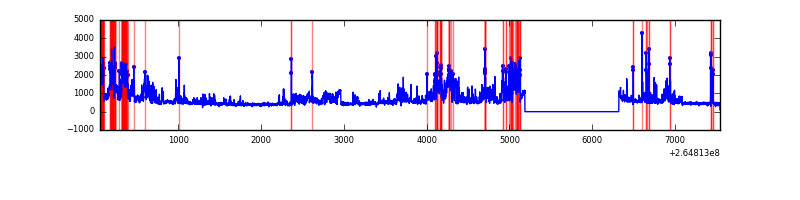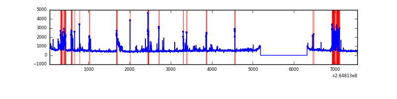 Red curve is a Poisson curve with rate = median count rate of data. |