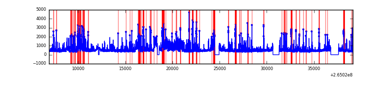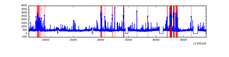 Red curve is a Poisson curve with rate = median count rate of data. |