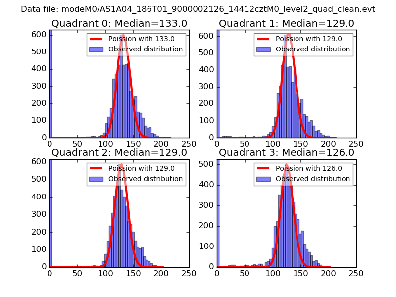Red curve is a Poisson curve with rate = median count rate of data. |