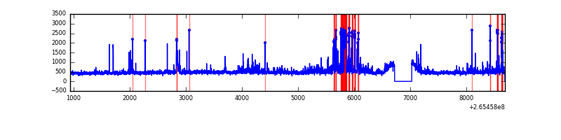 Red curve is a Poisson curve with rate = median count rate of data. |