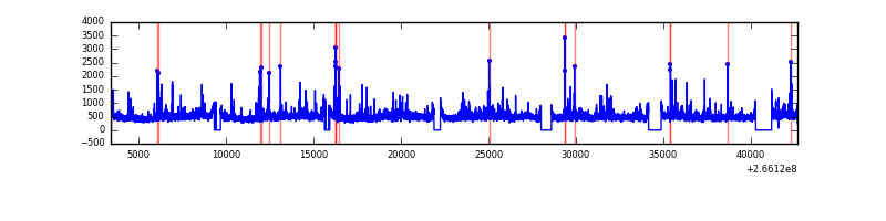 Red curve is a Poisson curve with rate = median count rate of data. |