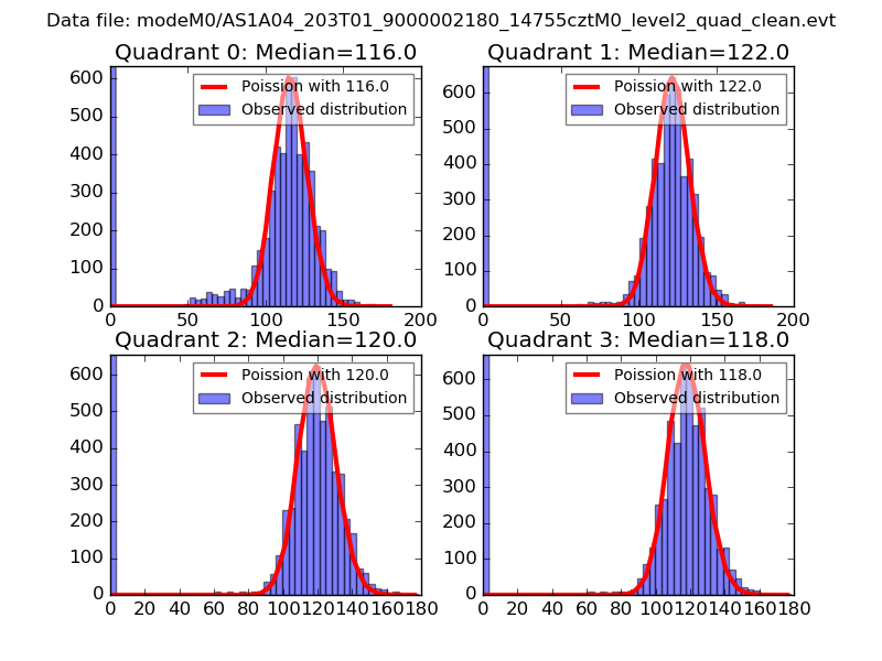 Red curve is a Poisson curve with rate = median count rate of data. |