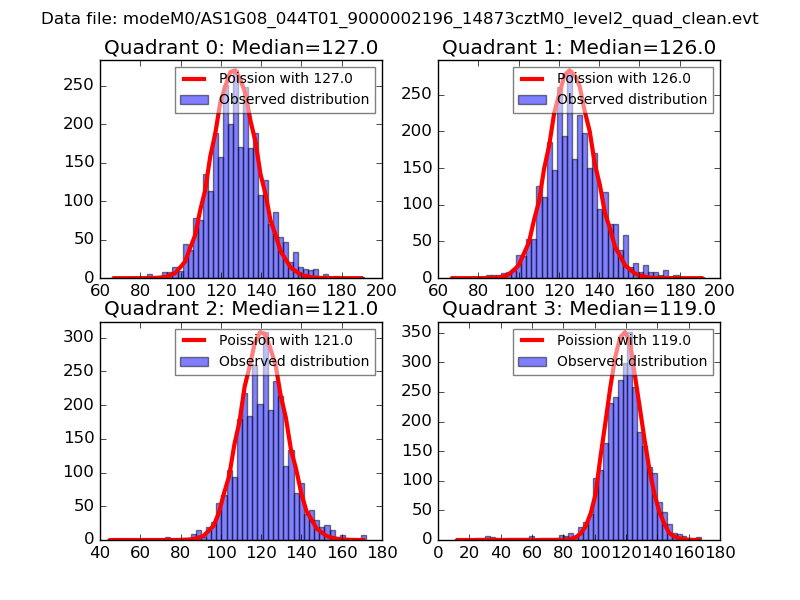 Red curve is a Poisson curve with rate = median count rate of data. |