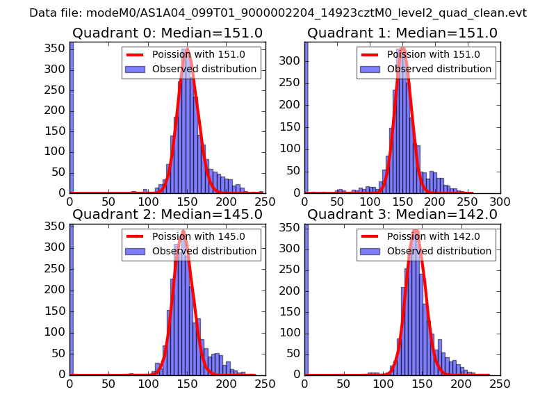 Red curve is a Poisson curve with rate = median count rate of data. |