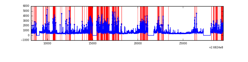 Red curve is a Poisson curve with rate = median count rate of data. |