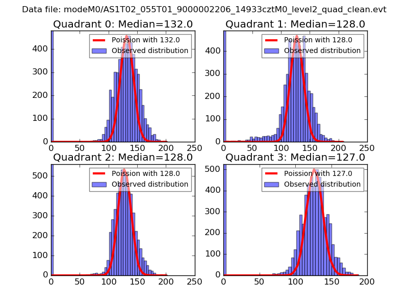 Red curve is a Poisson curve with rate = median count rate of data. |
