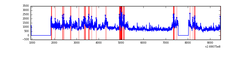 Red curve is a Poisson curve with rate = median count rate of data. |